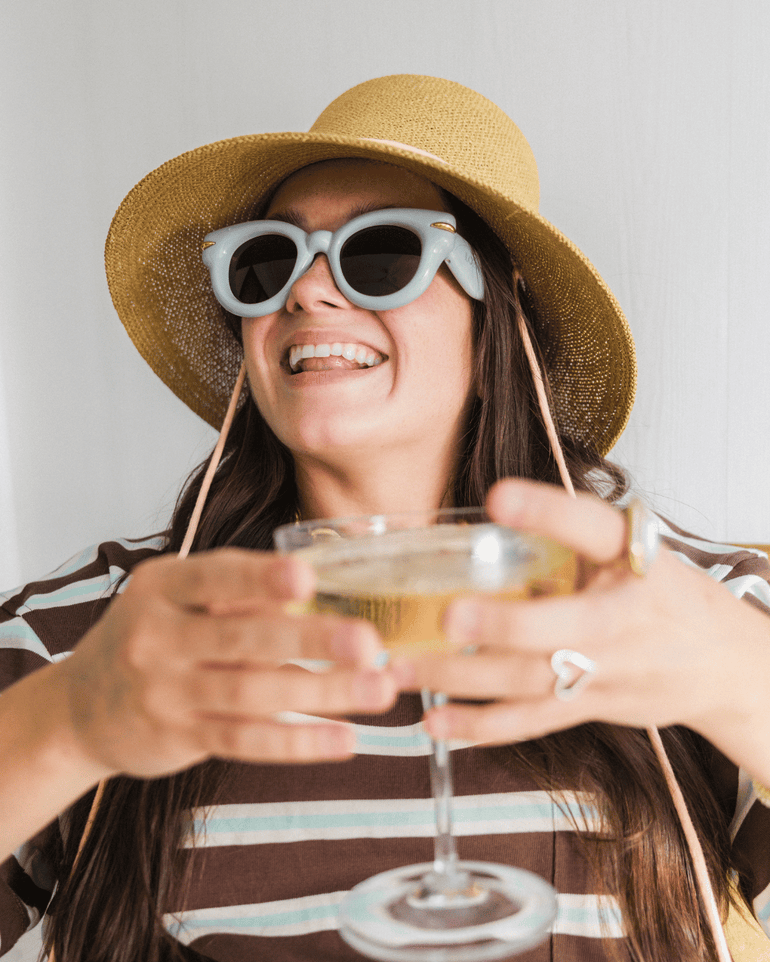 A classic bucket silhouette with a sparse honey and natural weave for an airy, lightweight feel. Featuring grommets, it’s made to pair seamlessly with any of our custom Hat Cords. She’s something special—made for Golden Hour.